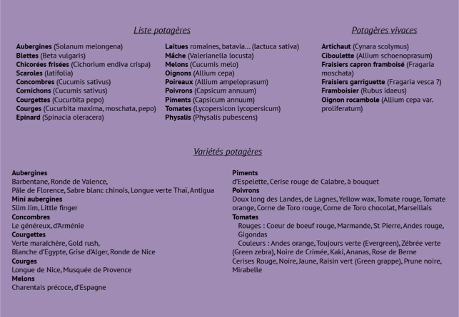 Toutefois, vous trouverez toujours de beaux plants ce printemps sur le marché de producteurs de Cadenet, le samedi matin de mi-avril à mi-novembre. La pépinière La Belle Verte, certifiée Nature et Progrès, nous fera le grand plaisir de venir proposer sa production. Nous collaborons étroitement depuis plus de dix ans.